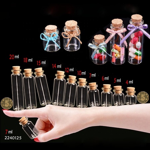 Оптовая продажа 10 мл 12 мл 14 мл 15 мл 18 мл 20 мл маленькие прозрачные стеклянные бутылки для желаний флакон с пробкой флакон для сообщений