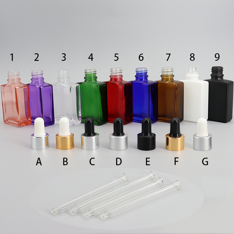 30 мл Квадратная бутылка эфирного масла с капельницей, пустой прямоугольный стеклянный контейнер для сывороток, лосьонов, косметической упаковки